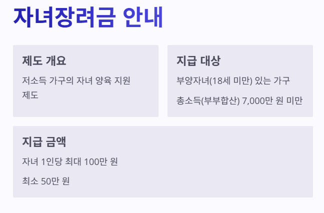 - 자녀 1인당 최대 100만 원 (최소 50만 원)
