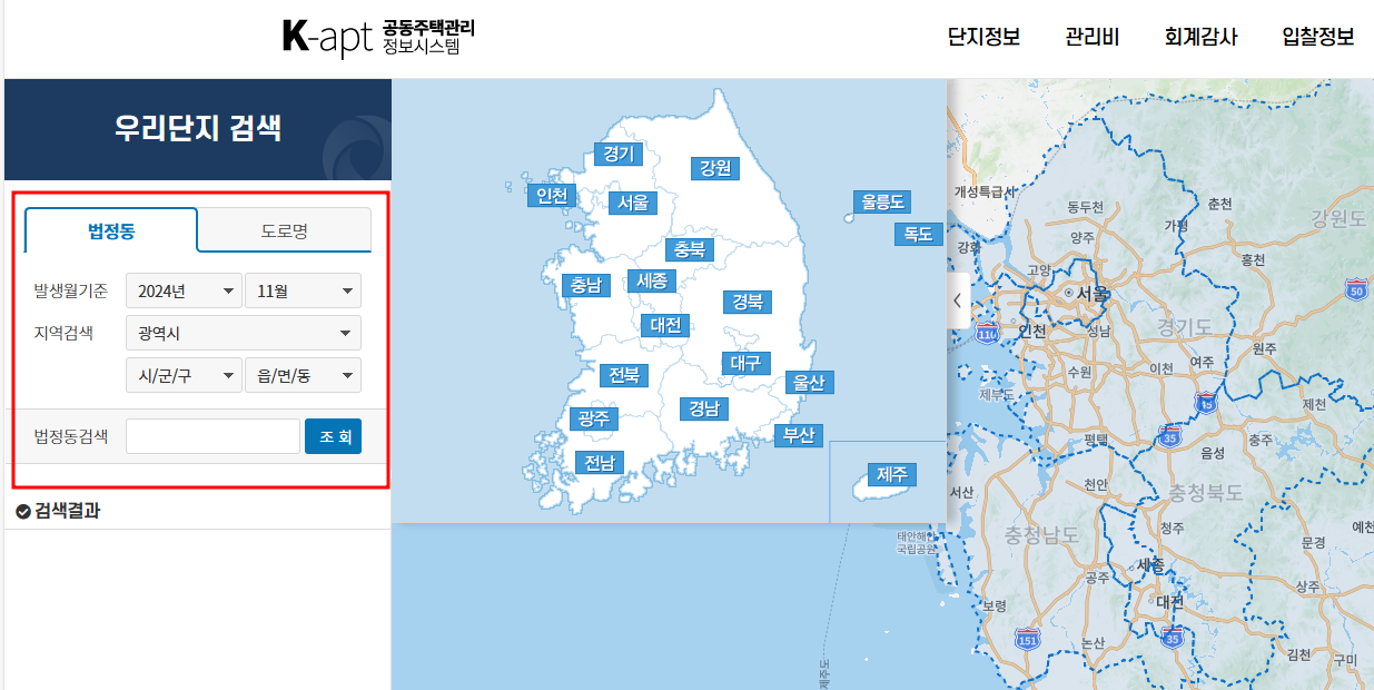 📌 K-apt에서 우리 아파트 관리비를 확인하고
