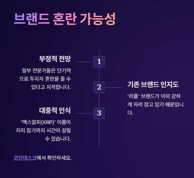 ✖ 기존 투자자 혼란 가능성 → '리플'이라는 브랜드가 익숙한 투자자들에게 낯설게 느껴질 수 있음