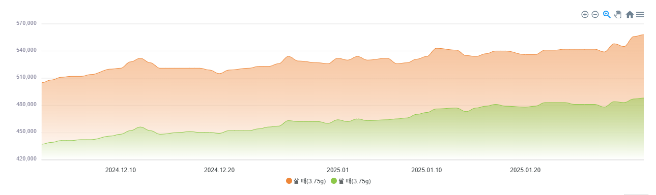 ✨2024. 12. 1. ~ 2. 2. 금시세 그래프 참고자료(주황 살때 시세, 초록색 팔때 시세)