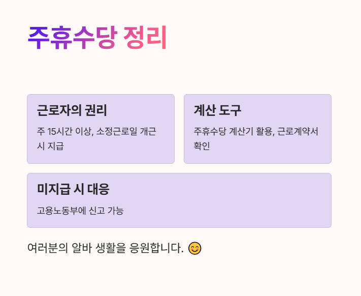 👉 주휴수당 계산기를 활용하여 쉽게 확인하고, 근로계약서를 꼼꼼히 확인하세요!