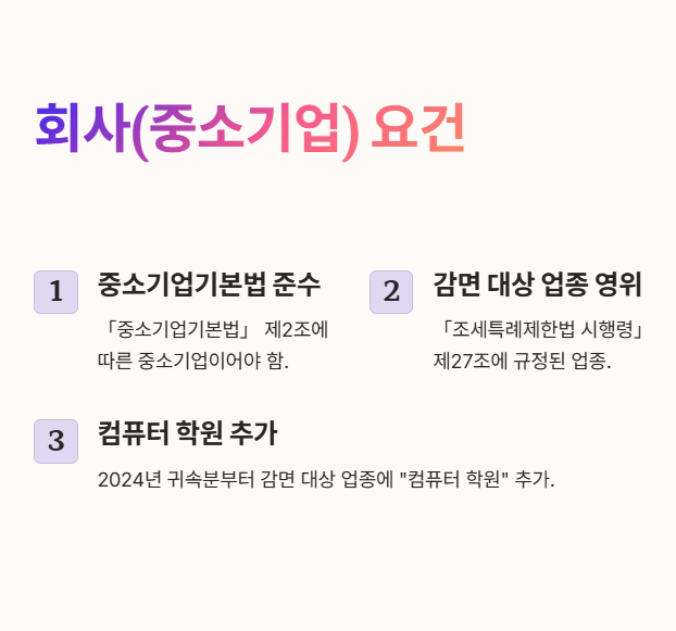 ✅ 2024년 귀속분부터 감면 대상 업종에 "컴퓨터 학원" 추가됨