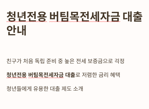 주거비 부담이 큰 청년이라면 이 대출 제도를 꼭 한 번 검토해 보세요.