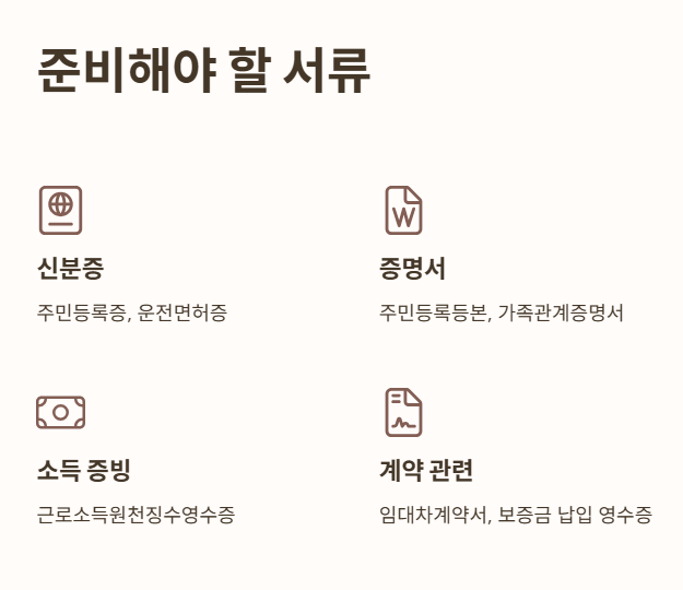 - 소득 증빙 서류(근로소득원천징수영수증 등)