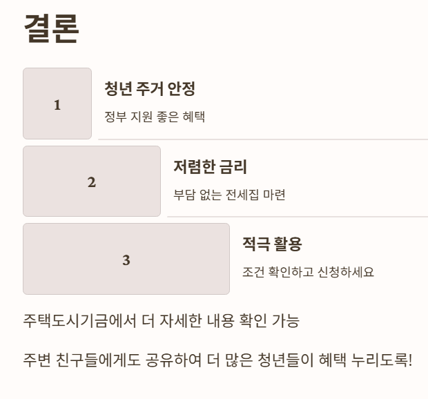 정부에서 청년들의 주거 안정을 위해 마련한 좋은 혜택이니까, 조건을 확인하고 적극적으로 신청하여 여러분의 독립 생활을 더 안정적이고 편안하게 만들어 보시길 바랍니다.