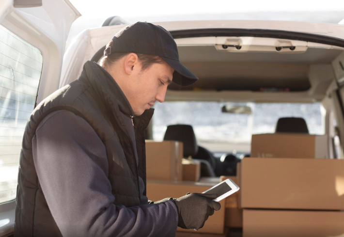 - 택배가 큰 허브센터로 가기 위해 트럭에 실리는 단계