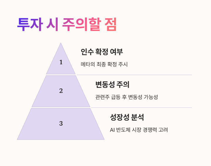 - 퓨리오사AI 인수 확정 여부: 현재는 메타가 인수를 논의 중인 단계이므로, 최종 확정 여부를 주시해야 합니다.