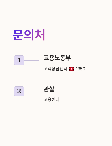 궁금한 사항은 고용노동부 고객상담센터(☎ 1350) 또는 관할 고용센터로 문의하면 됩니다.